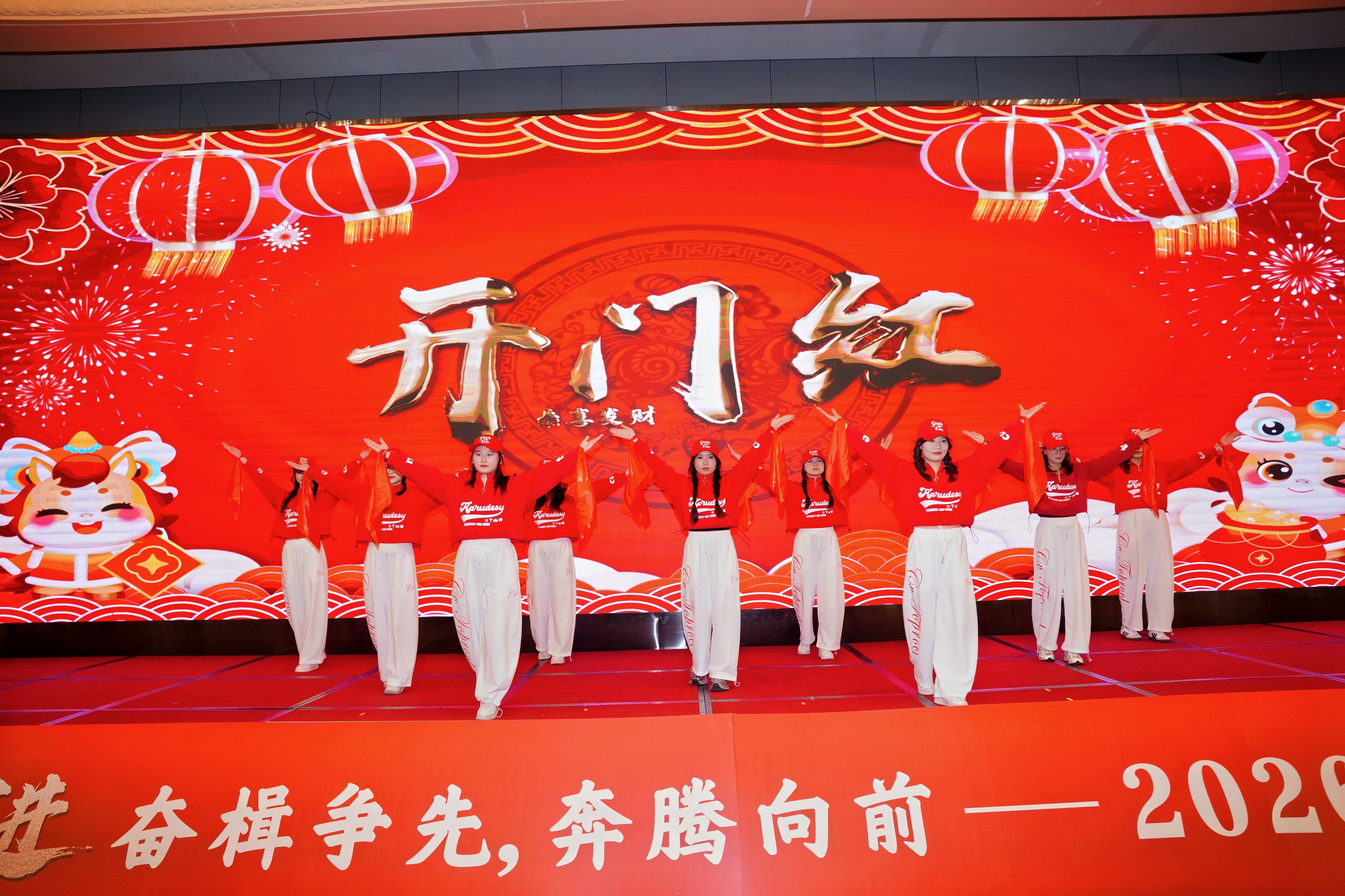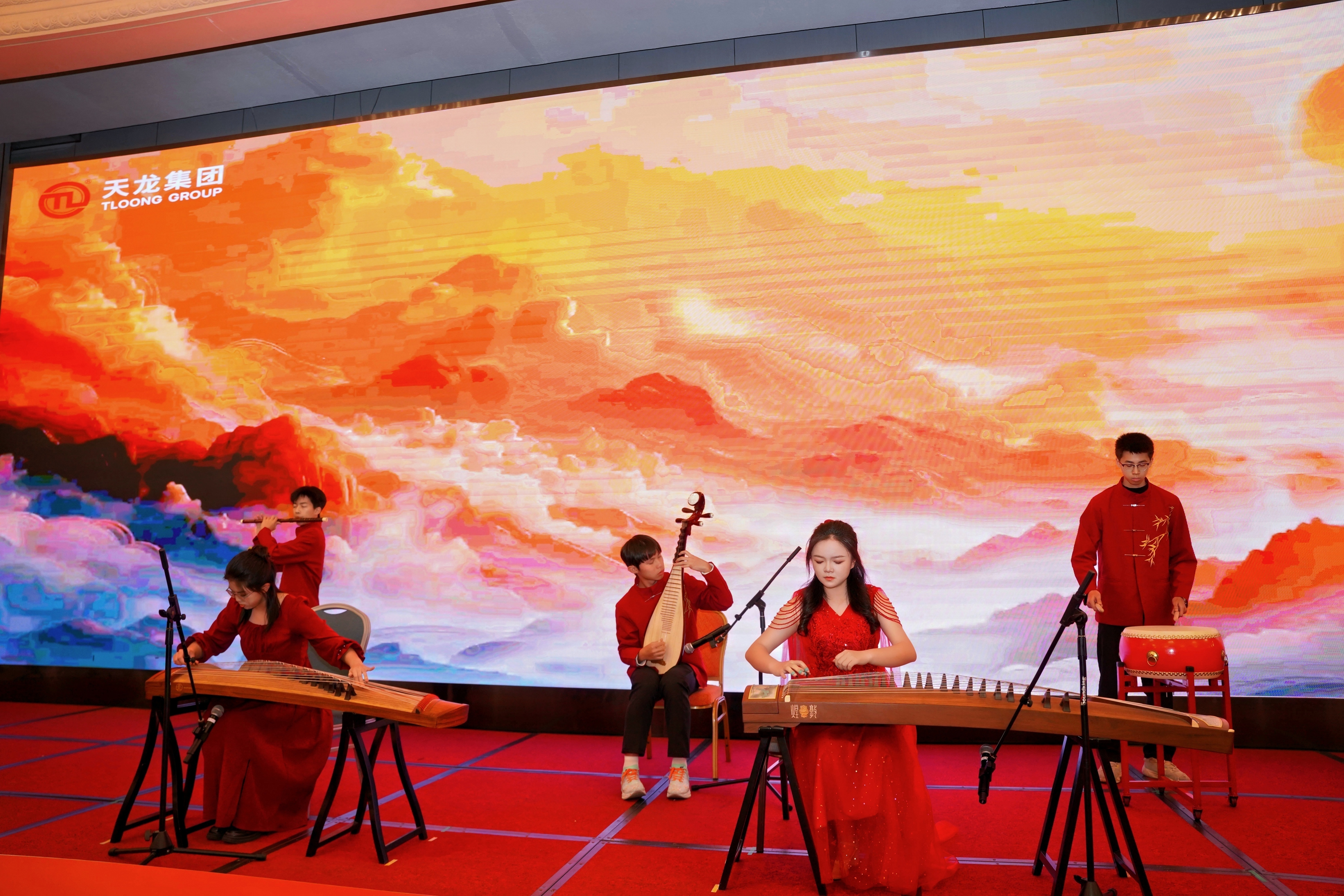 民乐演奏《盛世国乐》丝竹和鸣,古韵悠扬,大气磅礴的旋律奏响了盛世华章;歌曲《奔跑》旋律激昂、歌声嘹亮,唱出了天龙人永不停歇的奋进姿态;歌曲《一路生花》以温柔又充满力量的歌声,寄寓着对新一年发展的美好期许;歌曲串烧《夜空中最亮的星+最美的太阳》将现场氛围推向又一个小高潮;舞蹈《开门红》跳出了新年的吉祥如意,更舞出了天龙集团2026年开门大吉、蒸蒸日上的美好愿景。